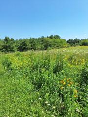 Spring 2024, Township of King received funding support through the Canadian Wildlife Federation Rights-of-Way as Habitat project in the Greater Toronto and Hamilton Area (GTHA) grant to create meadow habitat for Monarch butterflies - an umbrella species for our native pollinators. The area was seeded in the early spring with native seed mix consisting of 32 native wildflowers and grasses that will provide local food and habitat to a variety of pollinator species and wildlife for years to come. The site will be monitored annually to assess native seed growth in each plot and remove unwanted weeds and invasives from the area.
